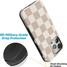 Product Page iPhone 15 Pro Max Neutral Checkerboard Military Grade Protective Phone Case Description: Out of all of our cases, the Fit Check is probably one of the most muted designs - and that's its greatest strength. Neutrals are huge right now, so why not keep the vibe going with the perfect case to match If your wardrobe is mainly whites, creams, browns, and beiges, there's no other choice than the Neutral Checkerboard case for your latest fit check. Another great thing about this minimalist case The symmetry! There's something incredibly satisfying about a pattern made up of nothing but clean, straight lines. You'll be all over this phone case if you're all about that chic lifestyle. And despite its name, you'll never need a fit check again with this design. Your look will always be on point. With this case, keeping your phone free from scratches certainly won't feel as complicated as a game of chess. Our 1mm raised lip and tough materials around the screen will protect your device from harm. No bad vibes here we keep it neutral! Features: Compatibility: Now compatible with the Action Button. Meet the Bold Collection - Not just a pretty cover for your phone, the Bold Collection Case from Casely is a super-strong Military-Grade-tested protective case, offering up to 8-feet of drop protection. Unique Features: Slip Resistant Side Grips. Stop drops in their tracks. Textured side grips help your phone firmly in your hand. Lightweight for Those on the Go: Don't carry a dumbbell around in your pocket. Ultra sleek, ultra slim. 3mm raised front lip protection. Weight: 1 Ounce. Protection: Shock absorbing air pocket technology cushions your phone from drops of up to 8 feet. Camera Protection: 1.5 mm raised lip keeps your camera safe from contact. Snap Crystal-clear pics every time. Charge Wirelessly: Go wireless. All Bold cases are wireless charging compatible. Designed in USA: Casely is one of very few case companies that designs our cases in the USA; All of our Phone Cases are designed in our Brooklyn, New York Headquarters Our Philosophy: We build protection for your Boldest behavior. #LiveBold. Casely's products are made with love and hand inspected from corner to corner to ensure high-quality phone cases you can count on. All cases come with a 1-year product warranty.