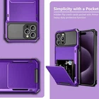 This iPhone 15 Pro Max case is a game-changer! The built-in card slot holds up to 4 cards securely, so I can ditch my bulky wallet. The dual-layer protection feels sturdy yet slim, and the shockproof design gives me peace of mind. The purple color looks sleek, and the sliding mechanism is smooth. Perfect for keeping essentials in one place!