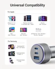 Introducing our 167.5W USB-C & USB-A car charger, a convenient and versatile solution for charging your devices while traveling. With two USB-C ports and one USB-A port, this charger is designed to meet all your charging needs on the road. 167.5W Simultaneous High-Speed Charging: The fast charging car adapter can charge up to three devices at the same time, The C1 port up to 100W power, The C2 port up to 45W power, and The A port provides 22.5W power, enjoy the journey and save your charging time. 100W Efficient Port: The USB-C1 port delivers up to 100W of maximum power, it can quickly charge your MacBook Pro 16’ and other devices up to 45% in 30 minutes. 45W Multi-Device Compatible Fast Charging: The USB-C2 port delivers 45W of maximum power, which provides fast and reliable charging for your Apple mobile phones, Android devices, Samsung and more. RELIABLE CAR CHARGER: The car charger has a built-in smart chip with multiple protections for over-current, over-voltage, overheating and short circuit. Compact and safe, size 2.6*1.2*1.2in. What You Get: 1 * 167.5W USB C car charger, 1 * 3.4ft USB-C to USB-C cable, and complete after-sales customer service.