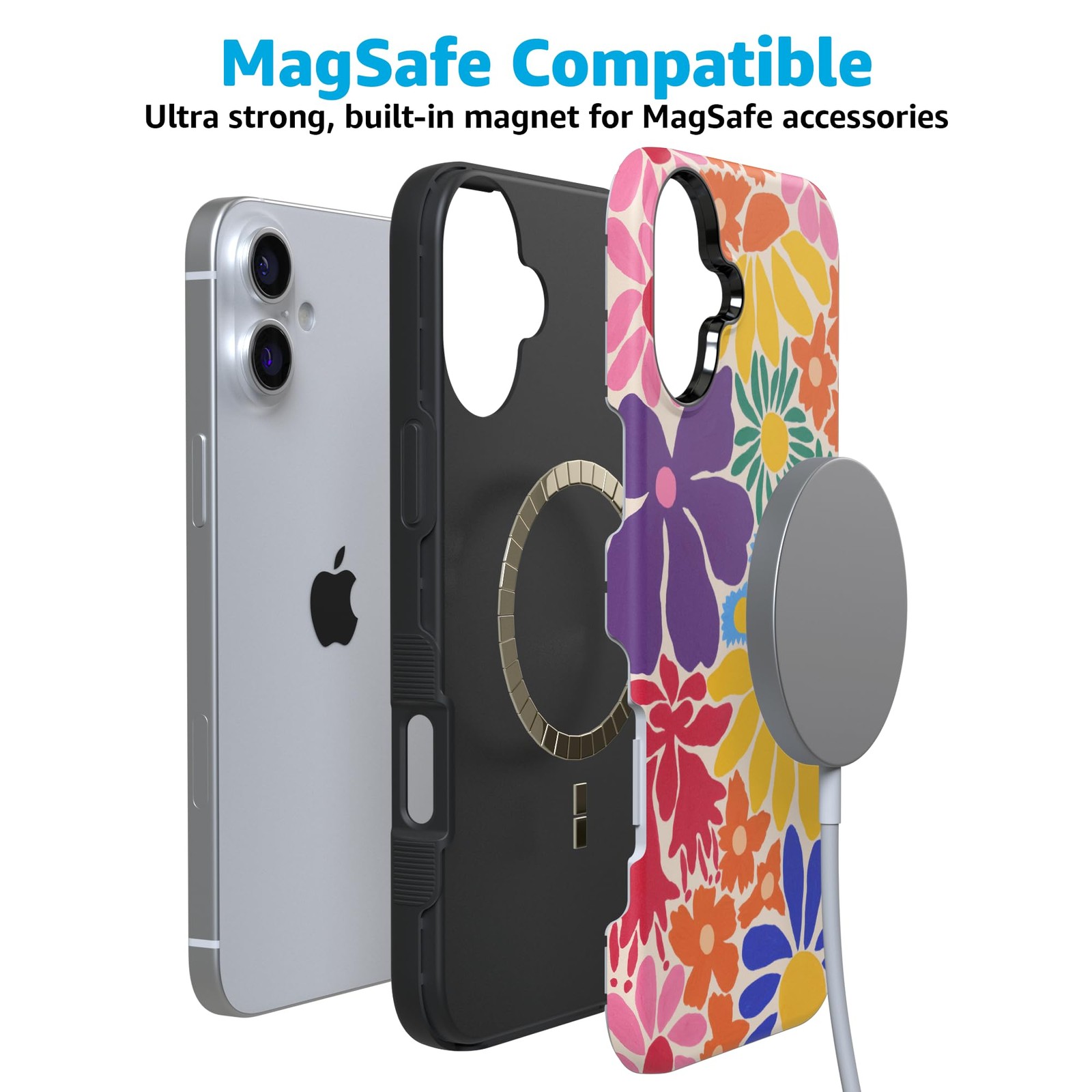 Product Page iPhone 16 Plus Flower Patch Floral Case Military Grade Protection Lightweight Description: The Flower Patch | Multi-Color Floral Case will add a pop of color to your world. It blooms with a garden of pinks, yellows, and blues, giving you a gentle reminder to stop and smell the roses. It does more than that, though. While it looks dainty and delicate, this floral case will keep your device safe from any harm that comes its way! How often have you dropped your smartphone and known the screen would shatter before it hit the ground The Flower Patch | Multi-Color Floral Case protects against just that. It comes with hard shell protection that provides 360 degree coverage to your phone. The raised front lip protection also keeps your camera secure, allowing you to snap as many selfies throughout the day. Don't take our word for it, though! Browse through our hundreds of positive Casely reviews to learn why you can count on our phone cases. Features: Compatibility: Meet the Bold Collection - Not just a pretty cover that is compatible with your phone, the Bold Collection Case from Casely is a super-strong Military-Grade-tested protective case, offering up to 8-feet of drop protection. Unique Features: Slip Resistant Side Grips. Stop drops in their tracks. Textured side grips help your phone firmly in your hand. Lightweight for Those on the Go: Don't carry a dumbbell around in your pocket. Ultra sleek, ultra slim. 3 mm raised front lip protection. Weight: 1 Ounce. Protection: Shock absorbing air pocket technology cushions your phone from drops of up to 8 feet. Camera Protection: 1.5 mm raised lip keeps your camera safe from contact. Snap Crystal-clear pics every time. Charge Wirelessly: Go wireless. All Bold cases are wireless charging compatible. Designed in USA: Casely is one of very few case companies that designs our cases in the USA; All of our Phone Cases are designed in our Brooklyn, New York Headquarters Our Philosophy: We build protection for your Boldest behavior. #LiveBold. Casely’s products are made with love and hand inspected from corner to corner to ensure high-quality phone cases you can count on. All cases come with a 1-year product warranty.