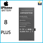 iPhone 8 Plus Replacement Battery (X Pro Extended) The iPhone 8 Plus Replacement Battery (X Pro Extended) by Apple is a black lithium-ion internal battery with a capacity of 2,675 mAh. It is designed for Apple devices, specifically the iPhone 8 Plus, and features fast charging capabilities. The battery has one port and uses a Lightning connection. It supports wireless charging using the Qi standard at 7.5W. This battery is designed for longevity and is made in the United States.