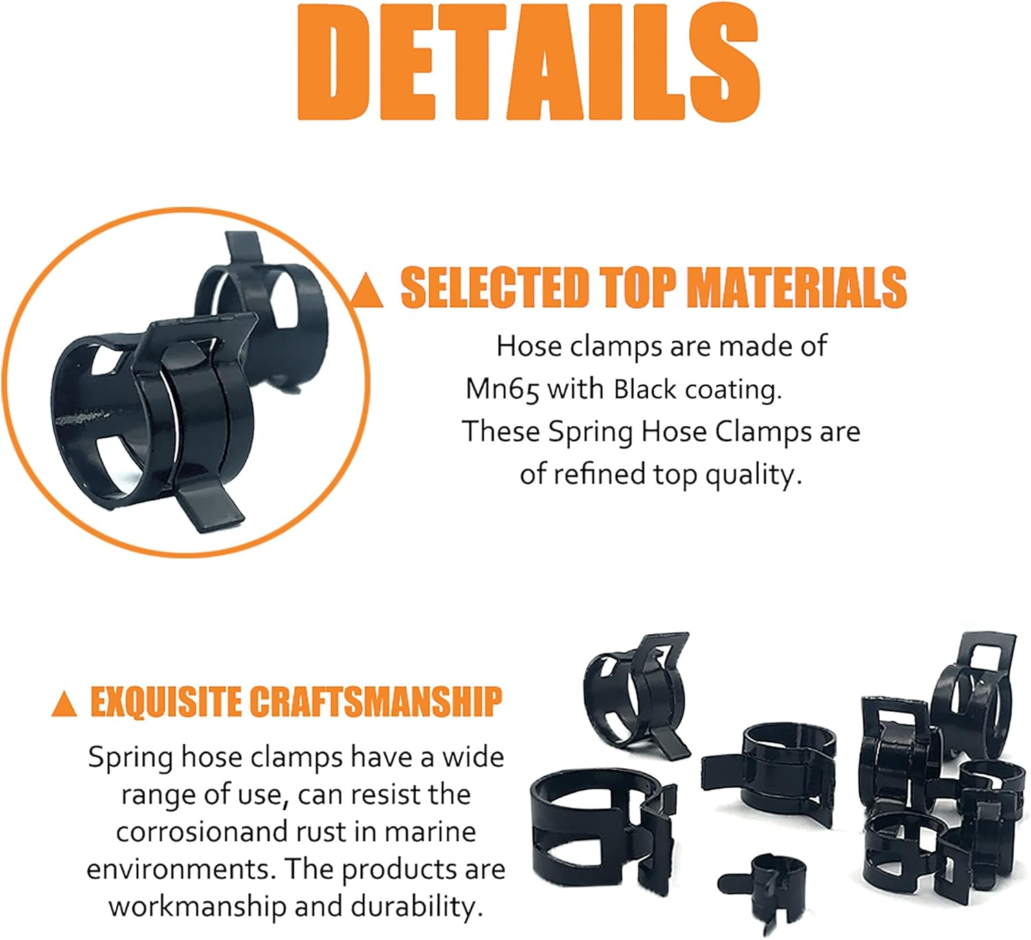 Store New Arrivals Add to Favorite View Feedback ISPINNER 80Pcs Spring Band Type Fuel/Silicone Vacuum Hose Pipe Clamp, 7Mm-18Mm Low Pressure Air Clip Clamp 7Mm 9Mm 10Mm 11Mm 14Mm 16Mm 17Mm 18Mm (Black) Description Item model number SPRING-CLAMPS Part Number SPRING-CLAMPS Style Portable,Sturdy,Box Color Black Brand ISPINNER Material Spring Steel Batteries Required? No Item Weight 0.32 Kilograms Batteries Included? No Package Dimensions 8.15 x 4.25 x 1.3 inches Manufacturer TY HIGH QUALITY - Made of high quality 65Mn Spring Steel QUANTITY - 80PCS SIZE - 8 Sizes, 7mm 9mm 10mm 11mm 14mm 16mm 17mm 18mm, each size 10pcs PACKAGE - Packed in a sturdy convenient case, can be used for a storage box. APPLICATION - Use them on push mower, riding mower and snowmobiles, ideal for vacuum and low-pressure fuel lines etc. Product Description CLAMPS SIZE & QUANTITY 7mm - 10pcs 9mm - 10pcs 10mm - 10pcs 11mm - 10pcs 14mm - 10pcs 16mm - 10pcs 17mm - 10pcs 18mm - 10pcs PACKING Packed in a portable plastic box neatly, reducing damage and loss during transportation and storage. Makes it easier for your access ans store. ISPINNER 80pcs Spring Band Type Fuel/Silicone Vacuum Hose Pipe Clamp, 7mm-18mm Low Pressure Air Clip Clamp (7mm 9mm 10mm 11mm 14mm 16mm 17mm 18mm) HIGH QUALITY These Spring Band Type Hose Pipe Clamps are made of high quality 65Mn Spring Steel. APPLICATION Clamps are adopted in securing hoses, pipe, cable, tube, fuel lines etc. Perfect to apply in both indoor or outdoor situations as automotive, industrial, boat, marine, shield, household and so on. ABOUT US We offer the best prices around on high quality products. Our E-store includes media such as books, movies, music and games while offering electronics, toys, sporting apparel, clothing, tools, general home, garden items and more. SHIPPING We are always working hard to ensure your package arrives as soon as possible. Please understand that some factors like weather, high postal traffic, and the performance of shipping companies are outside of our control. We offer free shipping to the lower 48 states and ship within 2 business days of payment, usually sooner. We do not accept P.O. Boxes. Please provide a physical address. RETURNS We offer a 30-Day Return Policy on items which you are not completely satisfied with. You have the option for a full-refund or an exchange of the item. No returns are available on items shipped outside of the USA. PAYMENT We accept PayPal. CONTACT US This page content is yet to come Please ad us to your favorite seller and visit again later Thank You