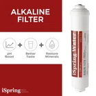 Individually wrapped, universal sized, alkaline filter replacement cartridge for iSpring PH100 and most industry standard 10" 6-stage reverse osmosis RO systems. This alkaline remineralization filter restores minerals and produces balanced alkalinity. This filter is option add-on filter to compliment any existing or new reverse osmosis RO water filtration systems. iSpring FA15US Alkaline Filter is built with a secure push-fit quick connection on both sides. Comes with 1/4" and 3/8" both size quick connection fittings. If you have trouble installing the filters please either refer to the user manual or contact us directly. Average Filter Life: 6 -12 months, depending on your source water and usage. We offer tech and customer service support by phone or email from our Georgia, USA Free Shipping Over $49.99* Details iSpring Alkaline Replacement Water Filter Cartridge for RO System, pH Product Description: Individually wrapped, universal sized, alkaline filter replacement cartridge for iSpring PH100 and most industry standard 10" 6-stage reverse osmosis RO systems. This alkaline remineralization filter restores minerals and produces balanced alkalinity. This filter is option add-on filter to compliment any existing or new reverse osmosis RO water filtration systems. iSpring FA15US Alkaline Filter is built with a secure push-fit quick connection on both sides. Comes with 1/4" and 3/8" both size quick connection fittings. If you have trouble installing the filters please either refer to the user manual or contact us directly. Average Filter Life6 -12 months, depending on your source water and usage. We offer tech and customer service support by phone or email from our Georgia, USA location. Contact our knowledgeable team for help with product selection that fits your specific water filtration needs and after-sale support to simplify your user experience. We are happy to be here to support our customers now and in the years to come.