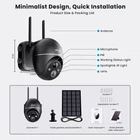 Product Description About this item 【Smart PIR & Custom Alarm Area】The wireless security camera upgraded RIP motion detection AI algorithm enhanced humanized recognition with custom alarm area can effectively reduce false alarms. You can also customize the alarm time period/adjust 10-level alarm sensitivity through the ieGeek Cam APP.You can also enjoy the same treatment of future feature updates, without having to spend an extra money. 【5MP QHD & 100ft Color Night Vision】The outdoor security camera can easily control the camera 355° Pan 120° Tilt (non-automatic tracking) on the APP side. Provide you with clear color 5MP visual experience no matter day or night, and 4X digital zoom to magnify details. 【 Motion trigger Siren/Spotlight Alarm & 2-Way Talk】 Three alarm modes: light only/siren only/Both siren spotlight, it can work according to the mode you set in advance after detecting motion. Built-in microphone and radio, real-time two-way talk function allows you to talk to the person in front of the camera through the APP. 【Designed for Challenging Outdoors】The solar security camera is equipped with a 3.5W monocrystalline silicon solar panel, provide an efficient/stable power source for the camera. IP65 weatherproof design, ABS polymer material ensures that this camera can withstand acid rain/snowstorm and other severe weather in the city. Wireless design, 8 minutes to install. 【Wire-Free & Data Encryption Storage】ieGeek wireless security camera outdoor use the advanced encryption standard technology AES128, which is a commercial and governments data encryption standard adopted by the US federal government. Camera supports SD card local storage (up to 128GB, not included) and US-Based cloud service. ieGeek ZS-GX4S 5MP 2.4Ghz PTZ Solar Security Cameras Wireless Outdoor 2023 upgraded 5MP QHD wireless battery outdoor security camera, high-definition picture quality can make motion detection and capture more accurate, and provide more monitoring details. AI Smart Analysis Filter Unnecessary Alerts * Paid features. Support recognition of pets (cats and puppies)/vehicles/packages. PIR Motion Dectection Smart Siren & Light Alarm Equipped with an upgraded PIR motion detection AI algorithm to enhance humanized recognition. Custom Alert Areas 98% Detection Accuracy Set 1-10 levels of PIR motion detection sensitivity level for multiple custom alarm zones. Real Time 2-way Talk Steady & Clear, this is what you need Real-time speak with people in view of the camera, like families, friends, intruders. Customize Alert Time Multi-Users Viewing With Loved Ones, it's Safer Share the camera with family who are traveling or on business trips. Monitor Simultaneously Monitor 4 ieGeek Devices Simultaneously Use the ieGeek Cam APP on your phone/tablet to view your 4 cameras simultaneously anytime, anywhere. Smart & Quick Playback Pull the time period to view/save the captured motion events. Work with Alexa Smart Home Linkage Makes Life Simpler * New features. Included how-to video. No hidden Costs, Bank-grade Encryption Local Storage Up to 128GB SD Card Requirements: Micro SD Cards from 10GB-128GB are supported (but not included). Class10 level read & write speed, file format FAT32. Encrypted Cloud Storage Service 7-day trial available. Only you can access cloud data, no other third parties. Your Privacy is Our Top Priority ieGeek security cameras use the Advanced Encryption Standard technology AES128, which is a commercial and government data encryption standard adopted by the US federal government. AES provides a 128-bit key. Support Multiple Smart Devices ieGeek Cam APP supports mobile phones/tablets/smart watches/work with Alexa. Not support RTSP / ONVIF / NVR / FTP. Not support automatic tracking. Not support 7/24 recording. Wire-free Degsin No wires or power cords needed. You can easily set up the outdoor PTZ camera within 10 minutes. *Battery is not removable. IP65 Weatherproof IP65 weatherproof design. ABS polymer material ensures that this camera can withstand acid rain/snowstorm and other severe weather in the city. 4dBi Dual WiFi Antennas Stable network connection and wider range, significantly reduces poor connection issues. Only support 2.4Ghz WiFi, not 5Ghz WiFi. Hassle-free Support ieGeek provides you 2 YEARS warran*y. If you encounter any problems, please don't hesitate to let us know.
