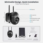 ieGeek 5MP Security Cameras Wireless Outdoor, Solar Outdoor Security Cameras System 360° PTZ with Spotlight & Siren, 2.4Ghz Outdoor Cameras for Home Security,Color Night Vision, Work with Alexa Product Details Indoor/Outdoor Usage: Outdoor Compatible Devices: Smartphone Power Source: Solar Powered Connectivity Protocol: Wi-Fi Mounting Type: Wall Mount Video Capture Resolution: 5 mp Number of Items: 1 Number of Channels: 2 Wireless Communication Technology: Wi-Fi Form Factor: Dome Night Vision Range: 100 Feet Material: Acrylonitrile Butadiene Styrene (ABS) Voltage: 12 Volts Wattage: 3.5 watts Batteries Required?: Yes Battery Power: 15000 Milliamp Hours Focus Type: Auto Focus Low light technology: Night Color Zoom Type: Optical Zoom Alert Type: Motion Only Room Type: Office, Kitchen, Living Room, Classroom Video Capture Format: MPEG H Unit Count: 1.0 Count Effective Still Resolution: 5 MP International Protection Rating: IP65 Maximum Webcam Image Resolution: 5 MP Package Dimensions: 7.24 x 6.81 x 5.2 inches Item Weight: 2.29 pounds Item model number: 1 Batteries: 4 Lithium Ion batteries required. Manufacturer: ieGeek Country of Origin: China Recommended Uses For Product: Outdoor Security Brand: ieGeek Model Name: ZS-GX4S Connectivity Technology: Wireless Special Feature: Night Vision, PTZ Technology, Motion Sensor 【Smart PIR & Custom Alarm Area】The wireless security camera upgraded RIP motion detection AI algorithm enhanced humanized recognition with custom alarm area can effectively reduce false alarms. You can also customize the alarm time period/adjust 10-level alarm sensitivity through the ieGeek Cam APP.You can also enjoy the same treatment of future feature updates, without having to spend an extra money. 【5MP QHD & 100ft Color Night Vision】The outdoor security camera can easily control the camera 355° Pan 120° Tilt (non-automatic tracking) on the APP side. Provide you with clear color 5MP visual experience no matter day or night, and 4X digital zoom to magnify details. 【 Motion trigger Siren/Spotlight Alarm & 2-Way Talk】 Three alarm modes: light only/siren only/Both siren spotlight, it can work according to the mode you set in advance after detecting motion. Built-in microphone and radio, real-time two-way talk function allows you to talk to the person in front of the camera through the APP. 【Designed for Challenging Outdoors】The solar security camera is equipped with a 3.5W monocrystalline silicon solar panel, provide an efficient/stable power source for the camera. IP65 weatherproof design, ABS polymer material ensures that this camera can withstand acid rain/snowstorm and other severe weather in the city. Wireless design, 8 minutes to install. 【Wire-Free & Data Encryption Storage】ieGeek wireless security camera outdoor use the advanced encryption standard technology AES128, which is a commercial and governments data encryption standard adopted by the US federal government. Camera supports memory card local storage (up to 128GB, not included) and US-Based cloud service.