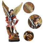 The chief warrior by God's side, the supreme commander of the angel army. In the "Bible" it is called one of the Chief Princes, which means "one of the great princes (princes) The only angels mentioned in the Old Testament are Michael and Gabriel, but in Christian culture, Michael is the most dazzling and famous angel.He not only has the courage and incompetence that mortals do not have. Comparable in power, and with the most beautiful appearance, very handsome.He is very brave, very brave. Although belligerent, he is full of compassion. He has absolute denial and ruthless annihilation of sin.He is the incarnation of "absolute justice", without a trace of darkness In Christian paintings and sculptures, Michael often appears as a young man with long golden hair, holding a red cross (or red cross-shaped sword) fighting a dragon or standing on a dragon. The dragon here is Satan It will be a great surprise to send the statue of the archangel, who protects the kingdom of heaven and dares to fight for the protection of mankind, to those who love religion and angels Durable Craftsmanship: Crafted from high-quality resin, this statue is designed to last, with a detailed finish that highlights the intricate features of St. Michael and the defeated dragon. Its durable material ensures the statue retains its vibrant colors and striking appearance over time.