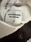 The product is a Janie and Jack girl's dress in size 7, featuring a cream white metallic color with chiffon fabric and ruffle accents. The dress has a knee-length design and is made of sheer fabric, adding a touch of elegance and sophistication to the overall look. Perfect for special occasions or everyday wear, this dress embodies a stylish and feminine aesthetic that little girls will love.