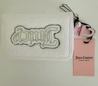 Embrace the blend of style and functionality with this Juicy Couture satchel/top handle bag. Crafted from premium faux leather, the handbag presents a classic white exterior, complemented by the brand's signature logo pattern. Its medium size ensures ample space for your essentials, while the zip closure keeps them secure. The white faux leather straps provide a comfortable carry, making it an ideal choice for everyday use or special occasions. Inside, you'll find a white fabric lining and inner pockets to organize your belongings. Accented with chic zipper details, this purse is a versatile addition to any wardrobe, capturing the essence of designer sophistication.