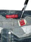 Vintage Y2K funky embroidered jean skirt by London Blue Vigoss Jeans. Four button buttonfly closure. Rainbow and flower embroidery on the left side and additional flowers on the back near waist. Two front pockets and no belt loops. Tag says size M (see measurements) 70% cotton and has some stretch to it.