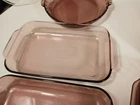 024 - 2l - heavy scratches and wear, few knicks - 624c lid - a few light scratches and knicks 023 - 1.5L - light scratches and wear, few knicks - 623c lid - a few light scratches and knicks pie dish - 229 - 23cm - light scratches and wear, few knicks 232-r - 2qt - 2l casserole pan - light scratches and wear, few knicks 232-r - 2qt - 2l casserole pan - this is a little lighter shade than other pans - light scratches and wear, few knicks 233-r - 3 qt - 3l -casserole pan - heavy scratches and wear, few knicks