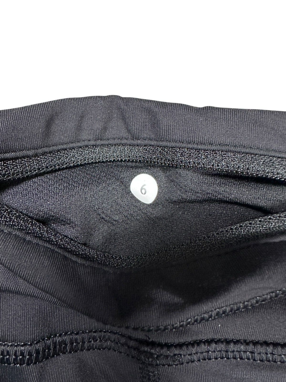 lululemon Black Cropped Running Leggings Size 6 Back Pocket Mesh Detail small flaw on seam / see photo Please refer to photos for size measurements / reach out with any questions or if you are wanting additional photos!