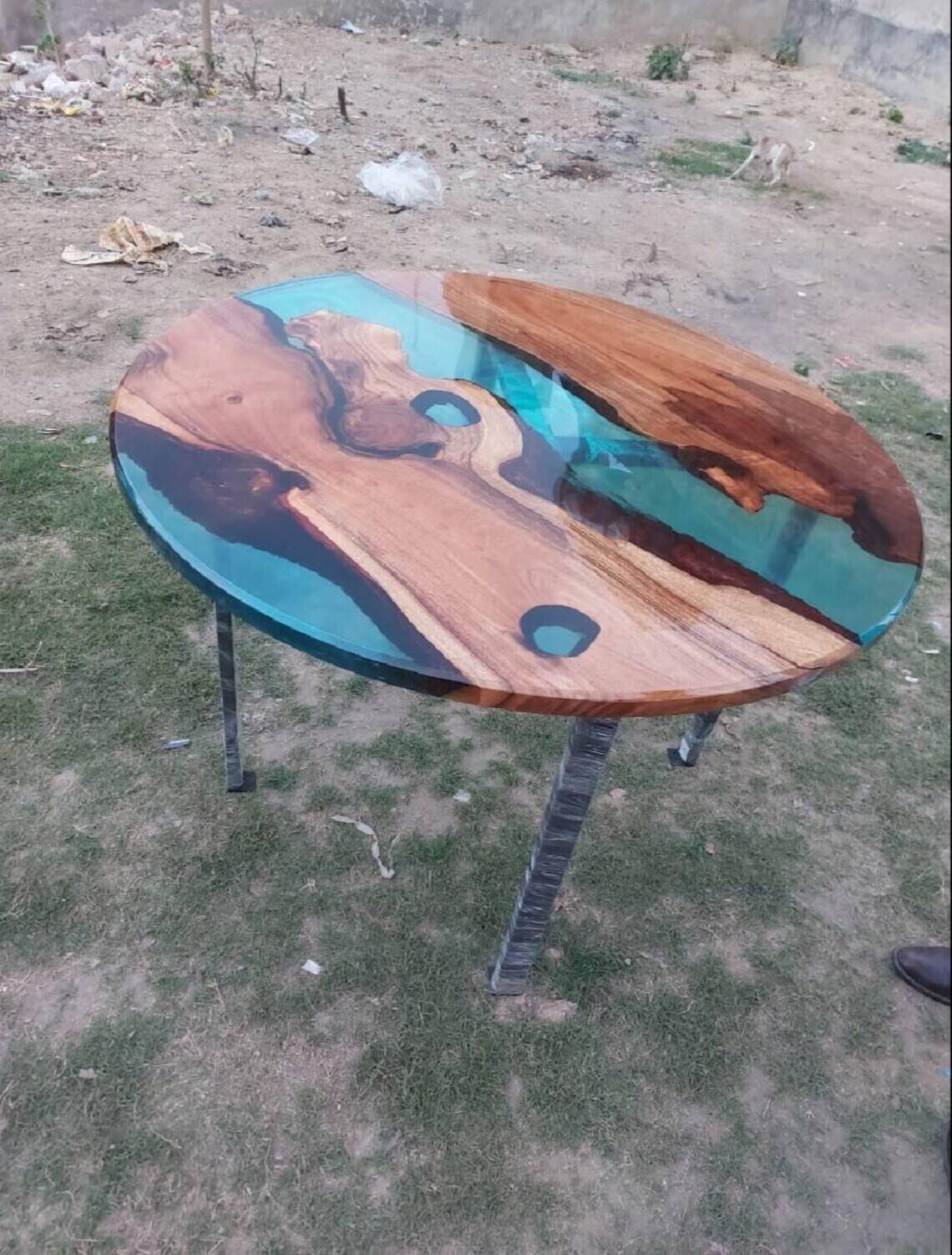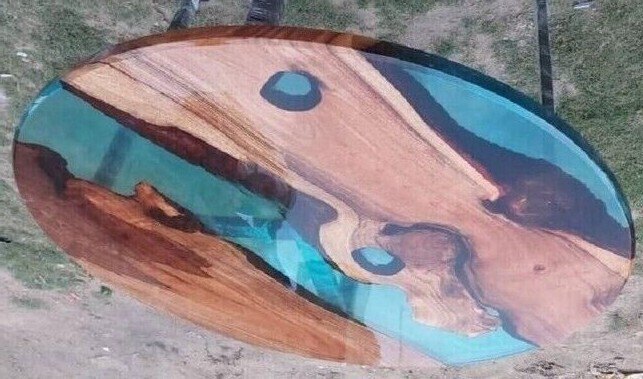 Our epoxy tables are custom-made, and we strive to use the same type of wood as depicted in our advertising pictures. However, it is not always possible to find an exact match, which may result in slight variations in the epoxy color and wood grain pattern. It's important to keep in mind that the table you receive may not be an exact replica of the advertising picture. We ensure that our clients are informed of every step of the process, from the selection of the wood to the final finish of the table. We keep our clients up-to-date throughout the process to ensure transparency and avoid any misunderstandings. Additionally, our price includes air delivery right to your doorstep via DHL/Fedex/UPS and insurance protection. Please note that you may be responsible for paying any applicable tax and duty on delivery. If you have any concerns or doubts, we highly recommend addressing them before making a purchase. Clearing any doubts beforehand will help avoid any issues and ensure a smooth buying process. It's important to note that any accessories depicted in the advertising images, such as knives, chairs, or lighting, are not included with the product and are only used for photography purposes. Additionally, please keep in mind that the price of the product does not include any type of legs. If you would like legs included, we can provide them for an additional cost. We recommend addressing any questions or concerns before making a purchase to avoid any misunderstandings.