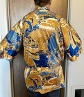 Elevate your loungewear game with this vintage men's Japanese kimono robe. Made of 100% nylon, this robe features a graphic print pattern with a mix of bold and muted colors that make it perfect for any bachelor pad or playboy-inspired wardrobe. The 3/4 sleeves and belted closure add a touch of comfort and style, while the machine washable garment care makes it easy to maintain. Ideal for relaxing at home or as a statement piece for a night out, this robe is perfect for any man who wants to add a touch of Japanese aesthetic to their wardrobe. The robe's theme is inspired by Japanese culture, making it a unique and trendy choice for any fashion-forward man. So why wait? Take your loungewear to the next level with this vintage men's Japanese kimono robe. The item will be very carefully packaged and shipped promptly upon receipt of payment. All items I sell are guaranteed to be as described and pictured, or your payment will be refunded upon return of the item in its original condition.