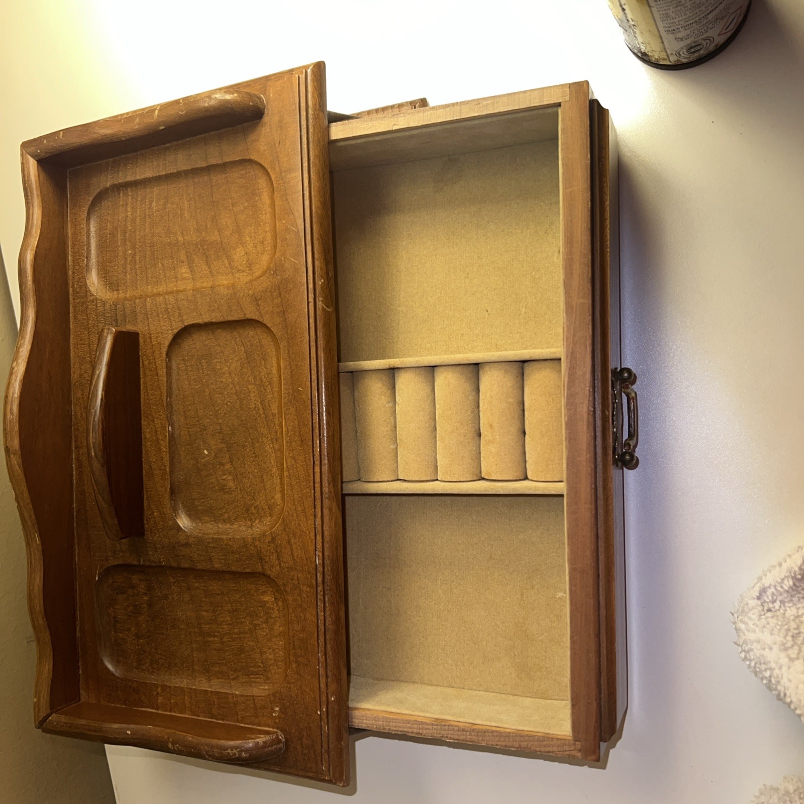 Vintage Wood Jewelry Box Valet Made In Japan