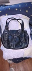 The Michael Kors handbag is a medium to Large -sized satchel/top handle bag made of black leather with vintage buckle accents on each side of the purse,this bag has a with a leather flap and button closure also it features two black handles made of genuine leather on each side. The inner lining is beige canvas clean with MK°symbol throughout the purse ((*has a small barely visible stain on the inside).I don't think it's permanent.The infamous MK © Symbol stamped initials in metal. This stylish bag is suitable for various occasions such as travel, weddings, parties, workwear, and business, catering to all pocketbook lovers ,designers, money-conscious, country, city, or plain,punk to preppy theme.!! Enjoy this great bag!!