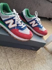 new balance size 9, worn a couple of times. The color is slightly faded, not much. Bottom of the sneakers are good.