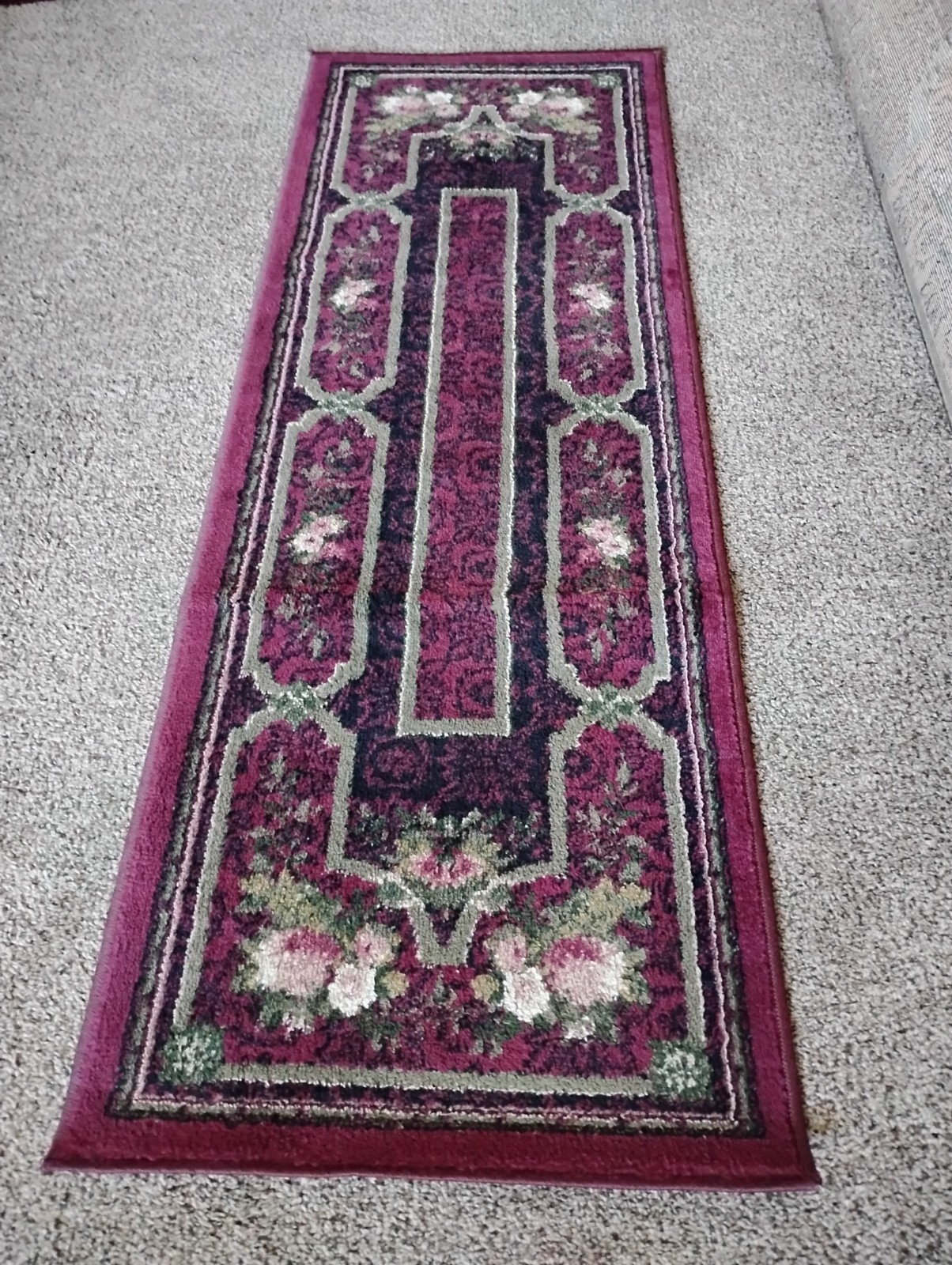 Here's a very nice purple area rug set up for sell this rug i used it for about two weeks and i moved to a apartment that is Wall to Wall carpet and I don't need it anymore the big area rug is 5"3"/7"6"" and the runner rug is 1"11"/5'7"and the scattered rug is 1'7"/2'9" the rug is in a pet free and smoke free house and it as never had shoes on it I keep it vacuum everyday with a Kirby rug nozzle and not the brush roll when I bought it I had to get all three of them separate and it was very expensive it came from California but like I said I only had it on my hard floor for two weeks and I moved it still smells like New ink or dye so it is in excellent condition I could pass it as new so if you have any questions feel free to ask and I will get back with you ASAP thanks for looking