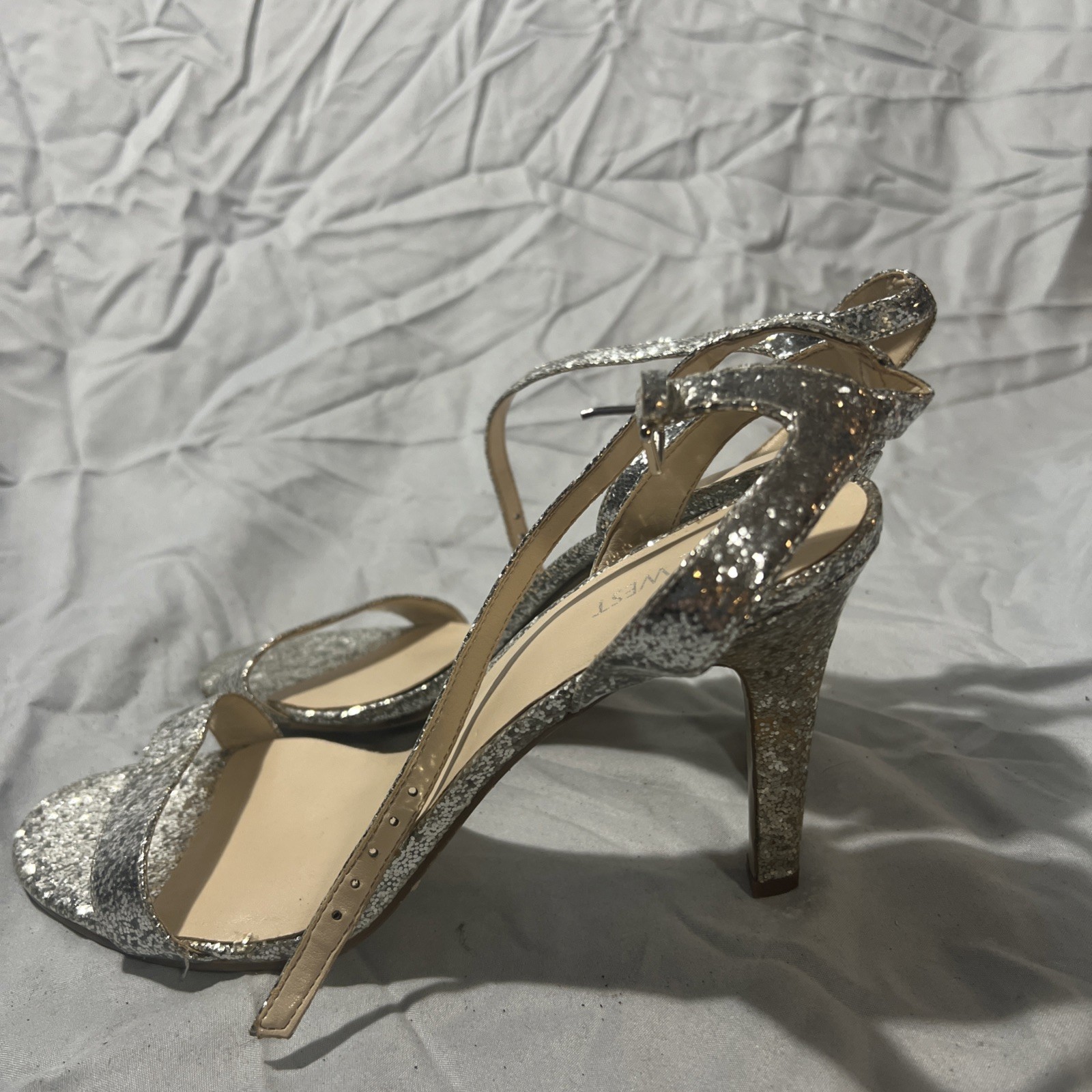 nine west silver sparkle size 10 1/2 strappy heels Gently used