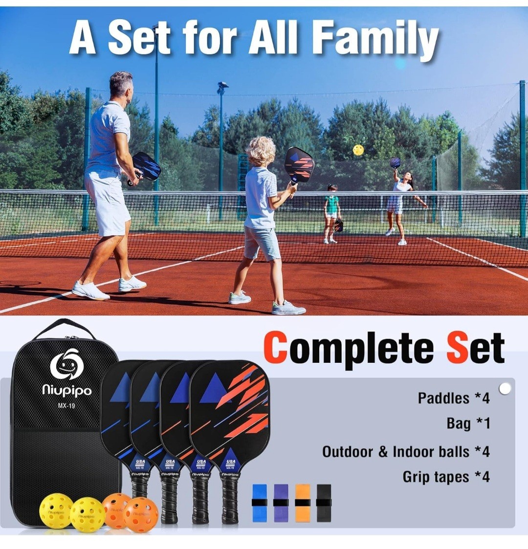 niupipo Pickleball Paddles Set of 2/4, USAPA Approved Lightweight Pickleball Rackets, Durable Fiberglass Surface with Polypropylene Honeycomb Core, Cushion Grip and Carry Bag #23.14.25
