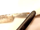 Here is a pre-owned old straight razor labeled W.H. Morley & Sons / Clover Brand, Germany. The razor has a black handle or scales. The blade centers well. The razor measures about 6 1/4 inches in length and the blade measures 5 5/8th inches from end to end. The blade is about 11/16 inches wide. The razor shows dirt and wear as well as corrosion on the blade. Please see pictures and ask any questions. Thank you for looking. (Inv 25,228)