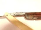 Here is a vintage straight razor marked C.V. Heljestrand Eskilstuna Sweden. It has a white handle and measures about 6 inches from end to end when closed. The razor shows some corrosion, chips. dirt, staining and normal wear. Please see the pictures and ask any questions. Thank you for looking. (Inv A27,840)