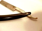 Here is an older straight razor marked Winplex Sales Co. and T275 F.P.R.W. w ith a black handle. The razor measures about 6 1/2 inches total length when closed. The blade measures 5 1/2th inches long and is about 5/8th inches wide. The blade shows dirt, wear, tarnish and spots of corrosion. The handle shows some wear or damage on one side near the tail end. P lease see the pictures and ask any questions. Thank you for looking. (Inv A24,455)