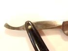 Here is a pre-owned older unbranded straight razor with a black handle. The blade is marked near the rivet "Selected Sheffield Steel", but it does not show the maker. It measures about 6 1/2 inches long. The blade itself measures about 5 3/4 inches long and is about 3/4 inches wide. It is attractive but used with some tarnish, dirt and wear typical from normal use and some very small light areas of corrosion. Please see the pictures and ask any questions. Thank you for looking. (Inv 23,369)