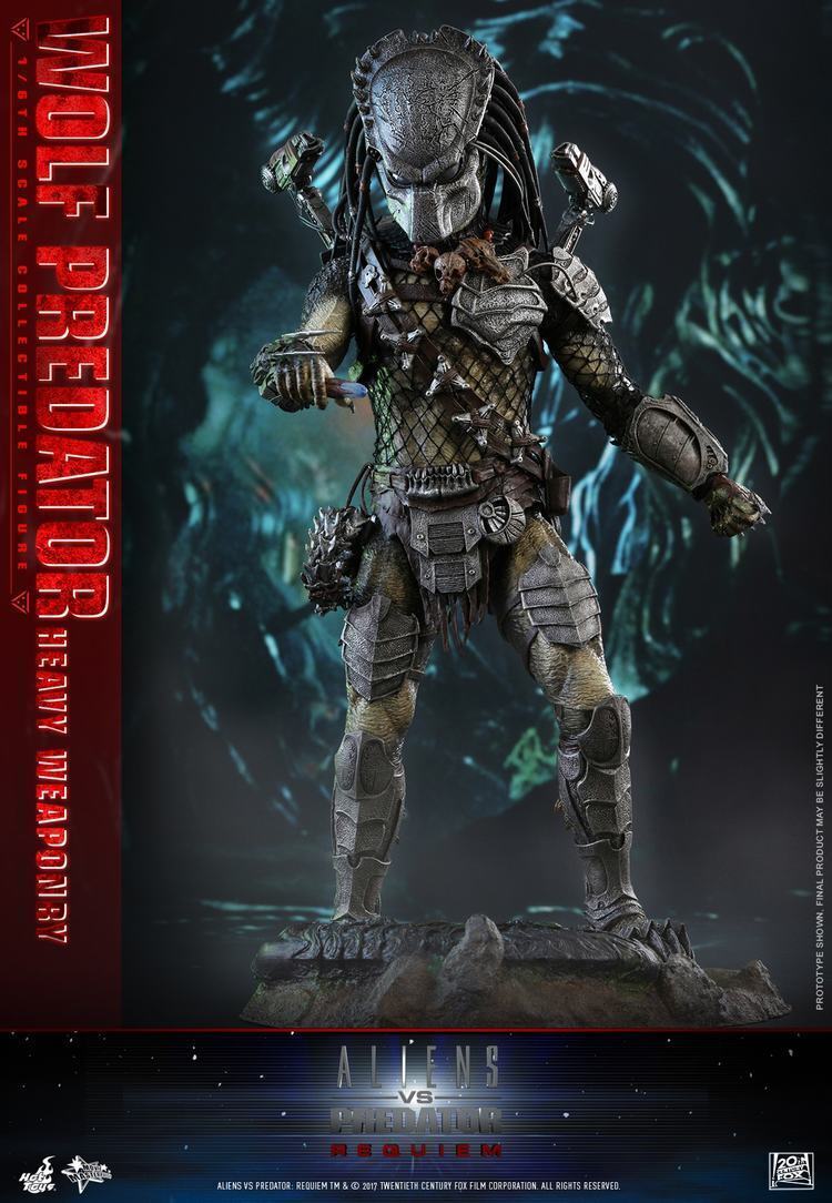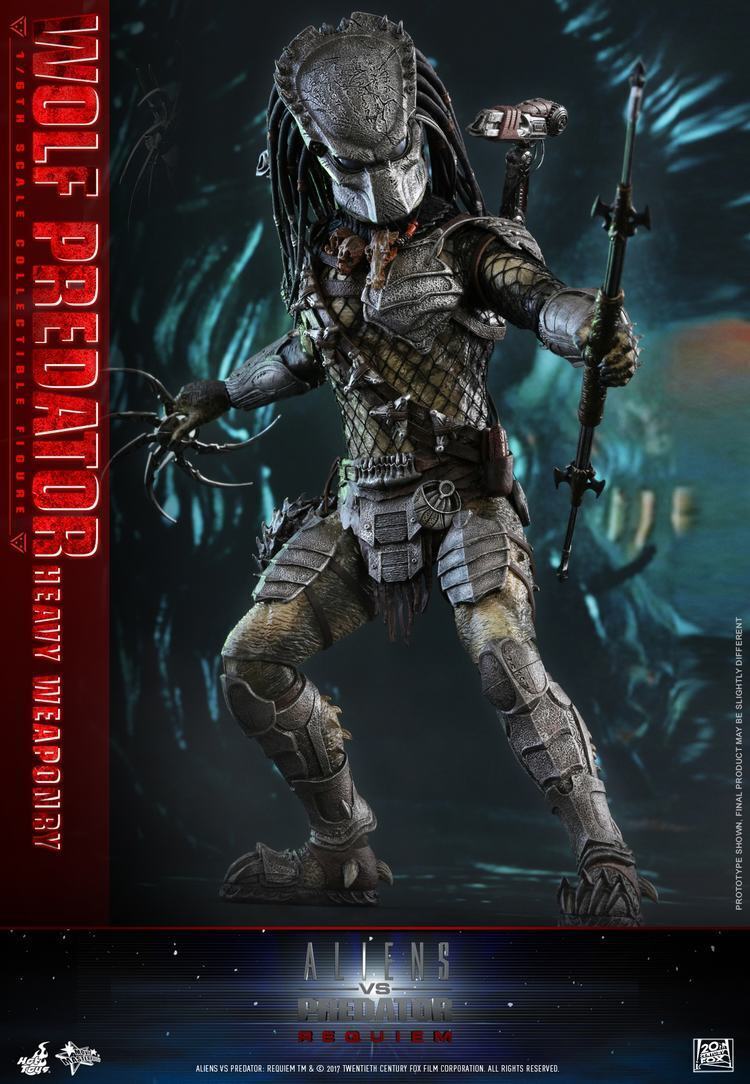 Hot Toys Mms443 –Aliens Vs Predator:Requiem – 1/6th Wolf Predator Heavy Weaponry The 1/6th scale Wolf Predator (Heavy Weaponry) Collectible Figure specially features: - Meticulously crafted head sculpt with detailed likeness of Wolf Predator in Aliens vs. Predator: Requiem. - Black colored dreadlocks with distinctive pattern and tribal accessories - Movie-accurate facial expression with detailed hair and skin texture - Approximately 35 cm tall - Over 20 points of articulations - Four (4) pieces of interchangeable hands including: One (1) pair of fists One (1) pair of hands for holding weapons - Each piece of head sculpt is specially hand-painted Costume: - One (1) upper body net costume - One (1) pair of forearm armor with weathering effect - One (1) bandolier with pouch and 5 pieces of Claymore Mines - One (1) left shoulder and chest armor - One (1) pair of thigh armor - One (1) pair of leg armor Weapons: - One (1) Combi-Stick (extendable) - One (1) Shuriken (in opened mode) - Three (3) Shurikens (in closed mode, attachable to the bandolier) - Two (2) shoulder cannons - One (1) Plasma pistol - One (1) metal-wired whip - One (1) whip (in curled up mode, attachable to the bandolier) - Two (2) pairs of diecast blades (attachable to forearm armor) - One (1) Dissolving Liquid (attachable to the pouch on the bandolier) - One (1) detachable Tracking Syringe (can be placed into the large cleaner case) Accessories: - One (1) face mask (wearable on head sculpt) - One (1) Cleaner Case (can be opened) - One (1) Med Kit - One (1) skull necklace - A rocky ground-like diorama figure stand