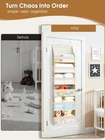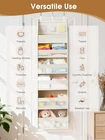MAXIMIZE EVERY INCH OF SPACE: Turn any door into a powerhouse of organization! With 6 deep main compartments for towels, diapers, or clothes and 13 breathable mesh side pockets for small essentials like chargers, keys, and cosmetics, this over the door storage keeps everything perfectly sorted—goodbye clutter, hello stress-free mornings! BUILT TO LAST & NO-SAG DESIGN: Say goodbye to sagging shelves! Reinforced fiberglass rods, thick non-woven fabric, and sturdy PP boards hold up to 55 lbs, keeping your organizer straight and stable even when fully loaded. Precision stitching ensures long-lasting durability—you can count on it every day. SEE IT ALL AT A GLANCE: Stop digging through piles! Mesh-front panels give instant visibility and airflow, keeping items fresh, dry, and easy to find. this back of door organizer perfect for bathrooms, nurseries, laundry rooms, or anywhere you need fast access to essentials. MULTI-PURPOSE ORGANIZER: From bedroom doors to dorms, kids’ rooms, bathrooms, or nurseries—this door hanging organizer adapts to your lifestyle. Store toys, diapers, clothes, or accessories anywhere you need extra vertical space. Declutter your home in style! HASSLE-FREE SETUP & COMPACT STORAGE: No tools, no stress—just hang with included hooks and insert the support boards. Instantly ready to organize! When not in use, it folds flat for easy, space-saving storage. Product description 1 Nursery 2 Bathroom 3 Pantry 4 Bedroom 5 RV