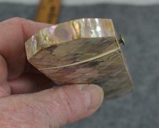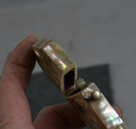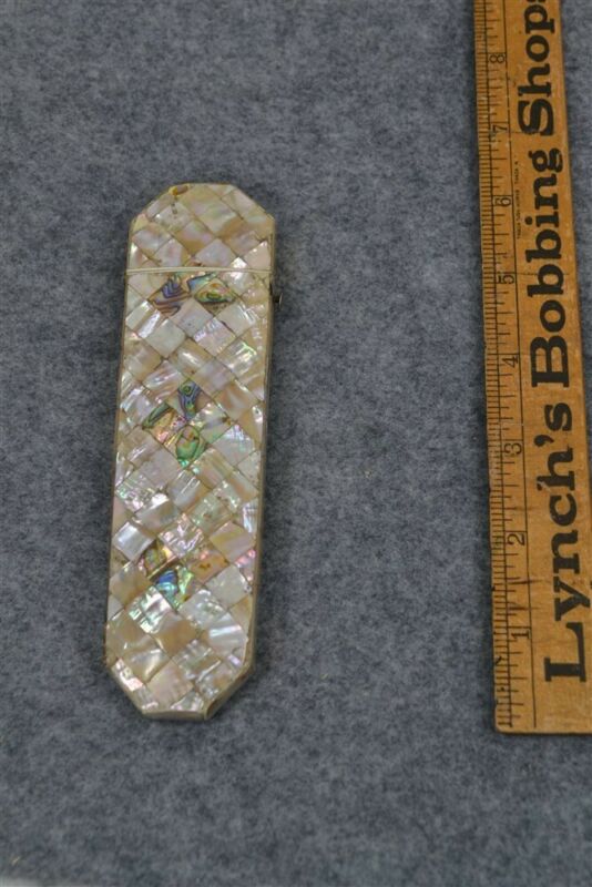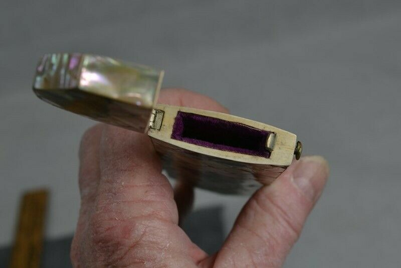 period eyeglass case wire rim glasses Civil War Era MOP original 19th c 1800 period eyeglass case 1. case for wire rim, Ben Franklin style glasses 2. Civil War Era, not reproduction 3. all over good condition 4. cannot find anything wrong with this item 5. lined with red velvet 6. clasp works well 7. MOP squares are well attached 8. all sides covered with mother of pearl 9. I believe this was a unisex item measurements 1. 6 x 1.5 across x 3/8 thick 2. opening 7/8 in. x 1/4 in. wide first class postage in US scroll down for larger photos You may be interested in our other eBay listings . I send a note at the end of the auction with payment information. Payment is expected within 2 days. We ship promptly within 1 day on receipt of payment. Pay Pal payments marked uncleared are shipped when payment clears. All US packages have tracking and are insured. International Buyers We ship international with United States Postal Services. USPS First Class postage and Flat Rate Priority Boxes or Envelopes can now be tracked to some countries . International packages over $100 ship priority or express. Contact us for more information. Import duties, taxes and charges are not included in the item price or shipping charges. These charges are the buyer’s responsibility. Please check with your country’s customs office to determine what these additional costs will be prior to bidding/buying.” Powered by SixBit's eCommerce Solution
