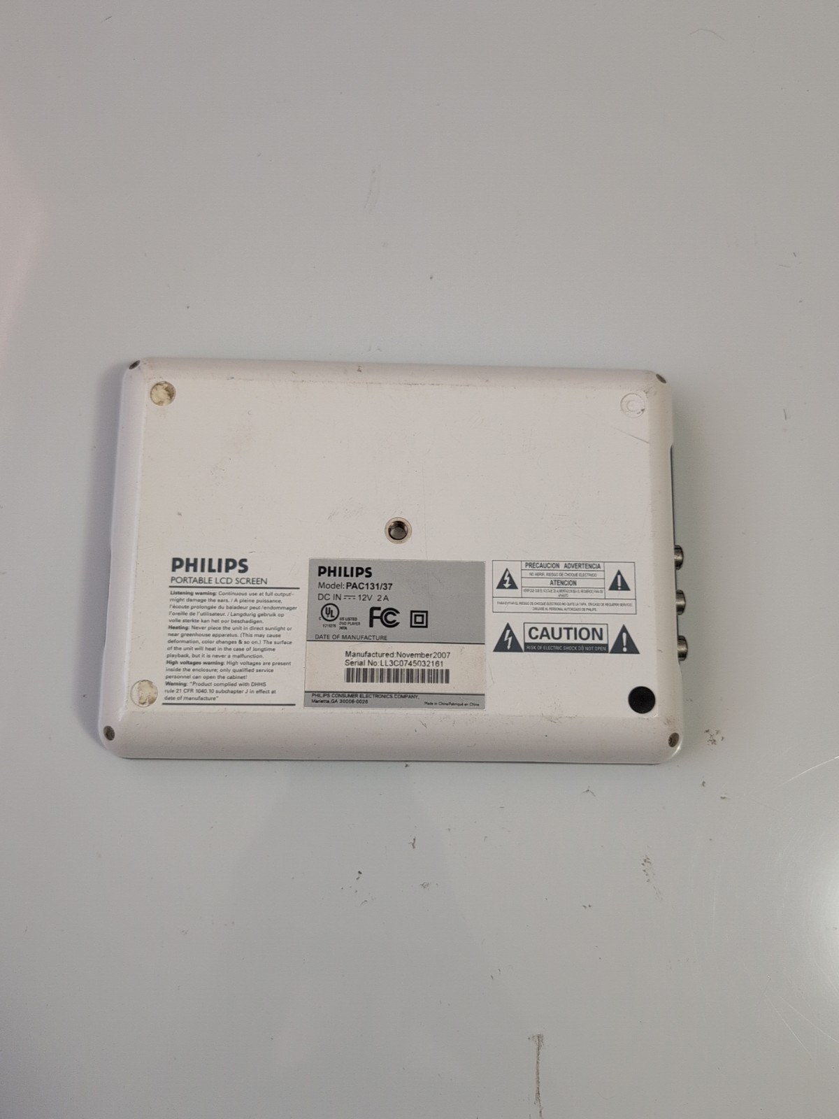 The product is a Philips portable LCD screen, specifically model PAC. While the item is untested, it is likely a reliable option for those looking for a portable display for their TV or video needs. Philips is a well-known brand in the electronics industry, known for producing high-quality and durable products. The LCD screen may be ideal for displaying content on the go or for use in a variety of settings, making it a versatile option for consumers Untested.