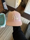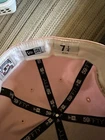 pink yankee fitted cap with yellow under brim never worn size 7 1/4