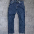 These are Polo Ralph Lauren men's jeans in size 36 with a 34-inch inseam. The jeans are in a blue color and made of cotton denim. They have a slim fit and a straight style, with a vintage look. The brand is Polo Ralph Lauren and the model is Varick Slim, part of the Ralph Lauren Varick product line.