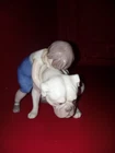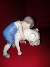 porcelain ceramic bulldog With Boy Figurine. Condition is Used. Shipped with USPS Ground Advantage.