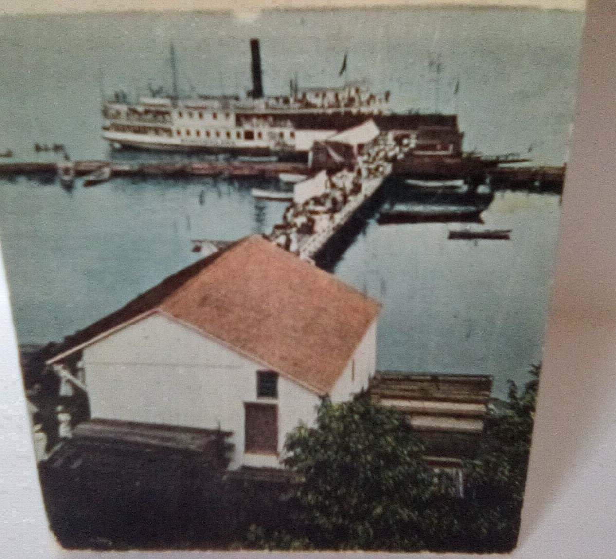 The product is an original printed postcard from 1910 featuring the Steamer Susquehanna discharging passengers at Betterton, Maryland. Published by Chessier Company in Baltimore, the postcard depicts a scene of a steamship passenger ship in a summer resort near Baltimore, MD. Measuring at a standard size of 5.5 x 3.5 inches and posted in 1910, this collectible piece of topographical postcard captures a piece of North American history during the Divided Back era.