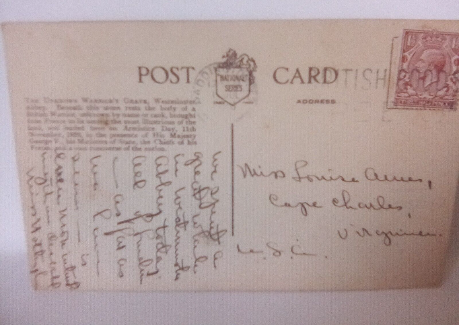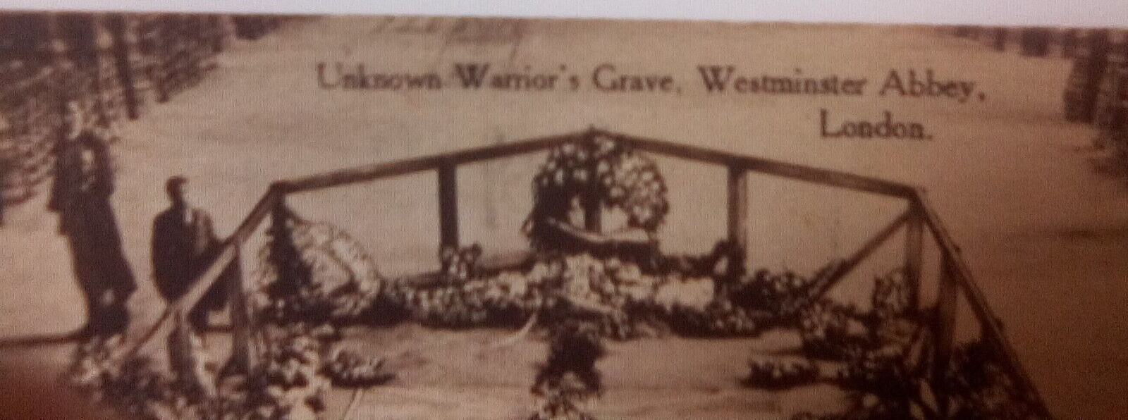 The product is a real photo postcard featuring the Unknown Warrior Grave at Westminster Abbey in London. It was posted in 1928, during the divided back era. The postcard showcases a landscape of the famous place, with the theme of historical figures and militaria. Made in England, specifically in Westminster Abby, this postcard captures a significant aspect of British history and is a collector's item for those interested in topographical postcards and historical memorabilia.