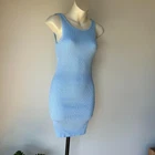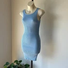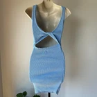 blue ribbed knit mini bodycon dress with twist back detailing brand: princess polly size: 8 instant buys are welcome international shipping available eco friendly packaging item modelled on a size 6 mannequin unpinned 19