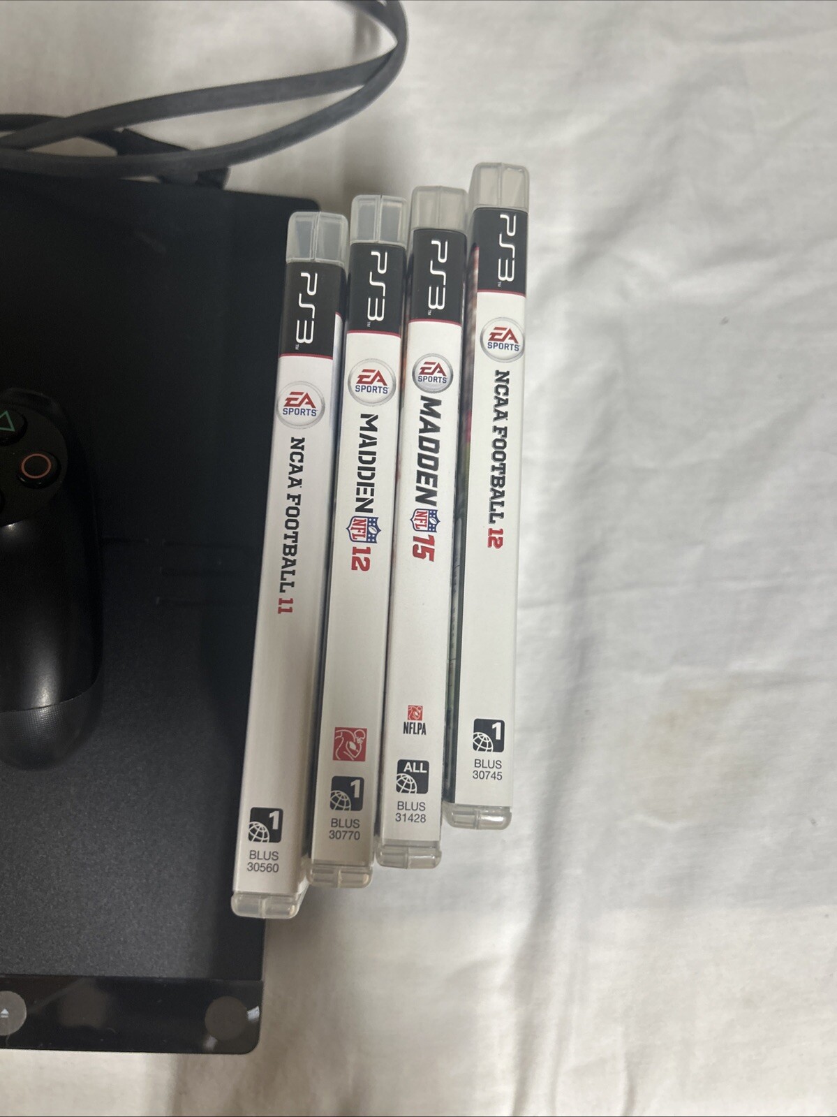 PS3 console tested and four games not all tested, remote works, missing hdmi, has power cable