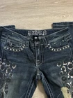 studded rawkn jeans, studs and buttons, and spider design!!! new with tag. unknown brand called rawkn , size 2 / size 26inches in waist. these jeans are seen on pinterest Cybergoth mallgoth affliction emocore draingang haunted mound fairycore fairygoth scene cybergoth gothic streetwear skater punk cyberpunk tattoo tribal baggy jessepinkman distressed × sinister carbon black thermal cyber y2k thermal tapout goth scenecore semetary girly 2000s new brand designer y2k stylish archive keycloset designer