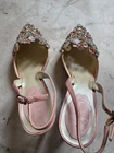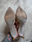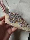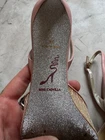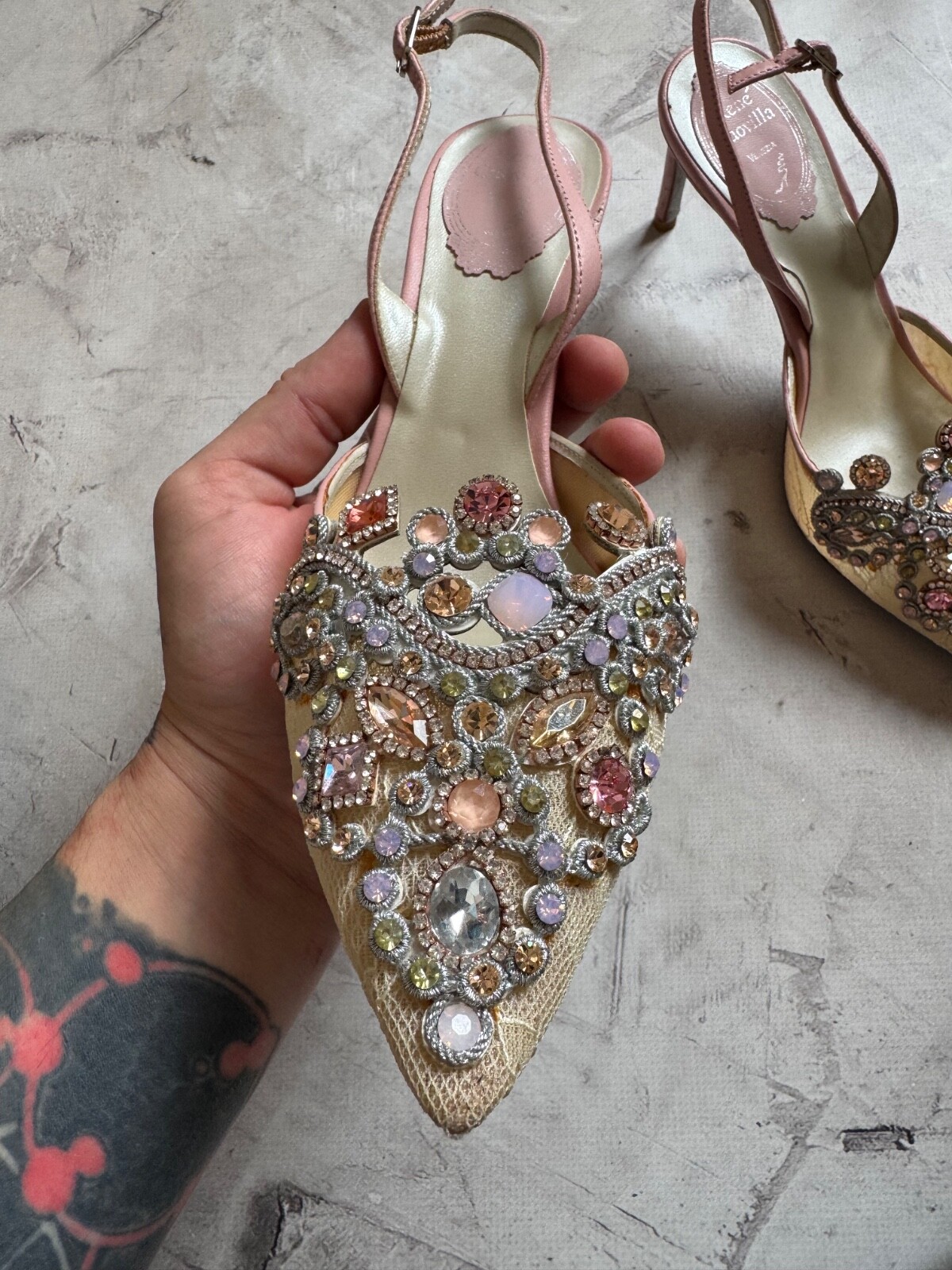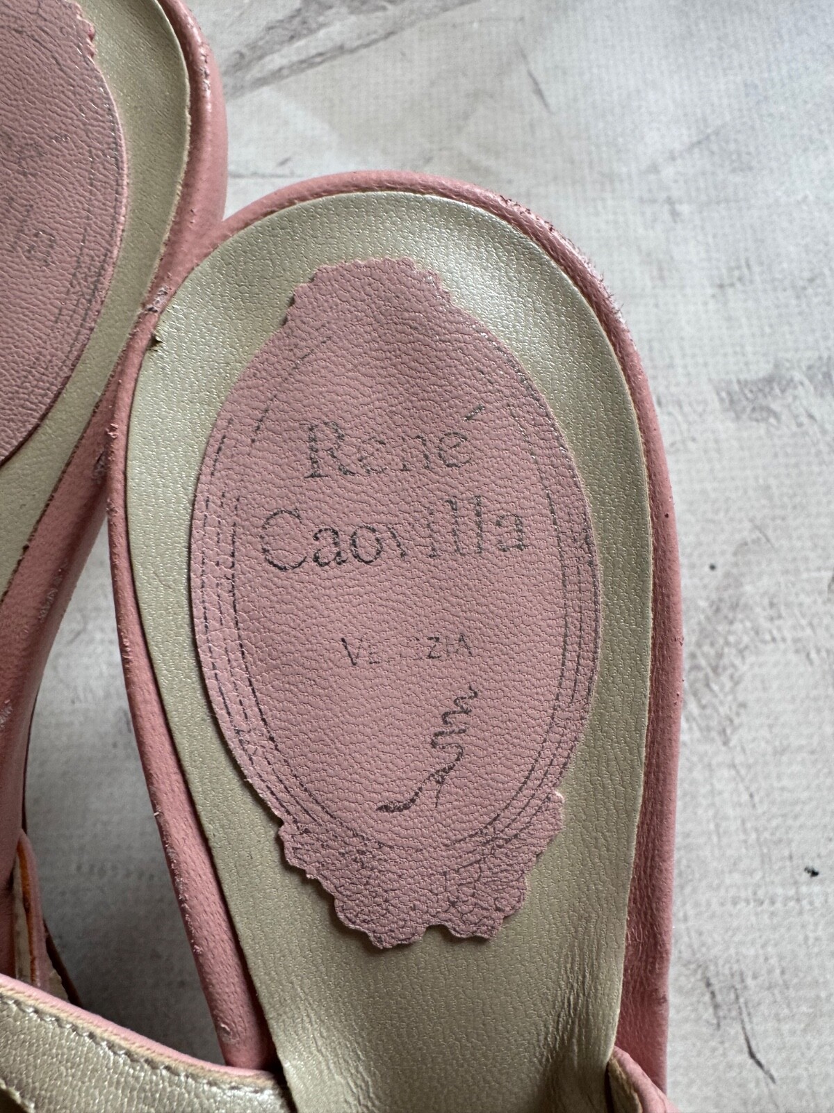 The Renee Caovilla Veneziana heels are stylish and sophisticated women's shoes featuring a geometric pattern in a vibrant pink color. These slingback heels have a buckle closure, made from luxurious leather, and are designed with a comfortable heel height of 7.5 inches in US size and 38 in EU size. Perfect for all seasons, these shoes are a chic option for any occasion, whether it's a winter gala, summer vacation, fall party, or spring outing. Add a touch of glamour to your outfit with these stunning heels from the renowned brand Renee Caovilla.