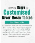 Material: Wood epoxy resin Size as per variation Customization Available, Please Message your desired size and shape This Epoxy Table is a perfect gift for anyone who appreciates the beauty of nature and the art of furniture making. It is a unique and stylish addition to any home decor, whether you're looking for a modern or rustic vibe. Blue epoxy Dining table is a stylish and modern piece of furniture that can add a touch of elegance to any living room. A blue epoxy Dining table is a stylish and modern piece of furniture that can add a touch of elegance to any living room. The table typically consists of a wooden base with a glass or epoxy resin top that is infused with blue pigment. Uses of a blue epoxy sofa center table: Displaying decorative items: The smooth surface of the table is perfect for showcasing decorative items such as vases, sculptures, or photo frames. Serving drinks and snacks: The table can be used to serve drinks and snacks to guests during gatherings. Working on a laptop or reading: The table provides a stable surface for working on a laptop or reading a book. Adding a pop of color to your living room: The blue color of the table can add a vibrant and refreshing touch to your living room decor. Easy to clean: The smooth surface of the table is easy to clean with a damp cloth. Unique design: The combination of wood and blue epoxy resin creates a unique and eye-catching design. Versatility: The table can be used in a variety of settings, from modern to traditional. Note: This process is whole done by hand and are based on natural wooden log, the table shown in the photos has already been purchased so actual product may vary from the picture shown. We will also share processing images with the buyer step by step. 1. The table top is made in Agra India & fully handmade. 2. The top will be delivered by FedEx or DHL free of cost door to door. 3. If there is any local tax custom duties or Vat will be paid by the Buyer at the destination. 4. The parcel is dispatch with proper packing & fully insured Covering all kind of risk 5. To maintain the table top is simple soap & water & dry cotton Cloth. 6 If You Are Looking Something Customize, Let Us Know We Will Make For You as Per Your Design, Size & Shape. 7. This is only Table Top & Base/Leg is not included. It can be used as Coffee/Dining Table Top , Counter Top, Wall Panel.