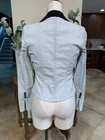 Upgrade your wardrobe with this stylish blazer jacket from Rock & Republic. The gray denim material gives it a chic and trendy look, while the button front adds a touch of sophistication. This jacket is perfect for women who want to make a statement with their fashion choices. The jacket is made with a cotton blend outer shell material, making it durable and comfortable to wear. Its size type is regular and the size is 2, making it a great fit for most women. The character is blue, and the style is a basic jacket. This jacket is perfect for any occasion, whether it's a casual day out or a formal event. New without tags Bust 16.5”
