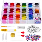 GREAT VALUE EMBROIDERY FLOSS KIT: Selizo embroidery kit come with 100 colors embroidery floss threads wrapped on bobbins, 39pcs embroidery tools, 300pcs small pony beads and 100pcs letter beads. Great starter kit for bracelets making and cross stitch supplies RAINBOW COLORS: The bulk embroidery thread kit including 100 bright colors that is enough for your bracelets making and other different craft projects. Each pre-wound bobbin is labeled with corresponding color number, so you can find the floss you need easily and quickly HANDY OPGANIZER STORAGE BOX: Our bracelets flosses are packed with a clear plastic box, is great for keeping the floss tangle-free. You can carry it with you all the time to make your embroidery projects. Perfect for kids as gifts BONUS TOOLS: The cross stitch set also come with 30pcs 3 size embroidery needles, 4pcs cross stitch needle-threading tools, 1pcs metal sewing thimble, 1pcs scissors, 1pcs untwist tool, 2pcs beading needles and 400 bracelets making beads, with these tools you can easily start the cross-stitch projects and make beautiful bracelets WIED USES: Suitable for bracelets making, embroidery and other crafting projects