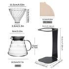 shoxil Coffee Pour Over Set – Complete Straight type, Black Product Details Complete 4-in-1 Set: This Shoxil coffee pour over set includes a V60 style coffee dripper, a sturdy iron stand, a glass coffee pot, and 100 coffee filters, providing everything you need for the perfect pour-over coffee experience. Sturdy Iron Stand: The straight-structured iron stand is designed to be robust and resistant to deformation. Its sleek and modern design ensures ease of use and adds a touch of elegance to your kitchen. V-Shaped Glass Dripper: The transparent glass dripper is crafted in a V-shape, allowing for optimal coffee extraction. The spiral ribbed interior guides the water through the coffee grounds, ensuring a rich and flavorful brew. Healthy Lead-Free Glass: Made from food-grade, high-borosilicate glass, this pour-over coffee maker set is durable, heat-resistant, and easy to clean. It ensures that your coffee is not only delicious but also safe to drink. Perfect Gift Option: This pour-over coffee set makes an ideal gift for family, friends, loved ones, and coffee enthusiasts. It combines functionality with style, making it a thoughtful and practical present for any occasion.