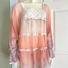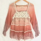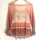 4 Love & Liberty Johnny Was sheer relaxed loose fit tunic boho peasant oversized blouse top size S/small mauve/blush/plum Pristine condition. No fade, stains, runs, holes, odors, etc. length: 31 1/2" armpit width 17 1/2" crochet lace trim detail on sheer silk blousy boho tunic. amazing attention to detail, soft romantic boho, see through, c-thru, sheer, unlined, loose fit, relaxed, flowy, shabby chic, cottagecore, bohemian, Size: S
