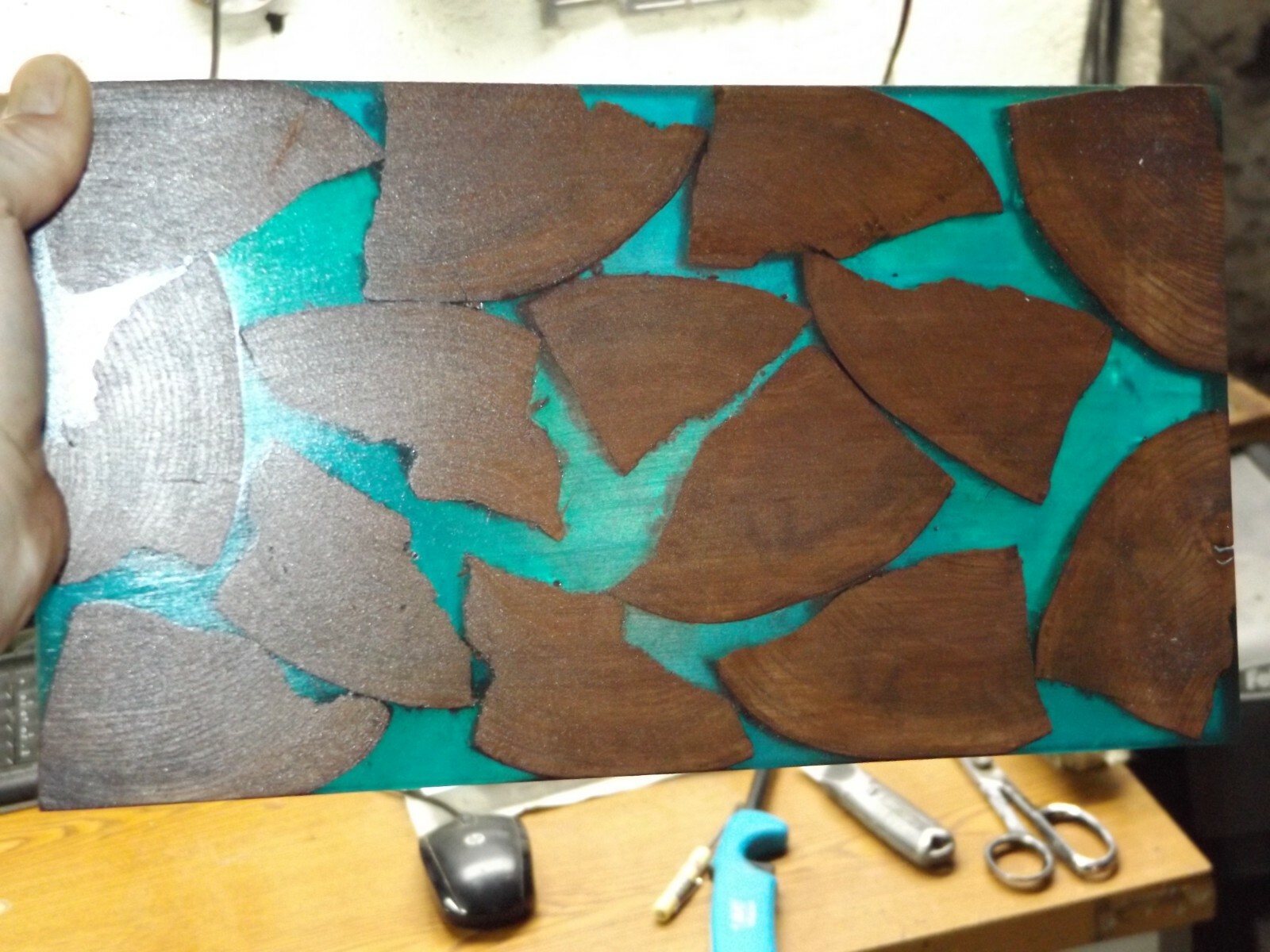small side table top oak Wood slab epoxy Craft Art blue/green 12x7x1 inches