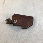 The Smith & Wesson leather holster 21 80 is a right-handed cowboy/western holster designed to be carried on the belt (OWB). Made of brown leather, this lightweight holster features an attachment type that securely fastens to the belt. Ideal for hunters and enthusiasts, this holster provides a traditional and stylish way to carry your Smith & Wesson firearm with ease and convenience. Please look at the pictures closely, as this is the item that you will receive.