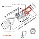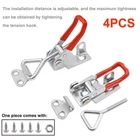 smseace 4 Pack Adjustable Toggle Clamp (with Lock Hole),100Kg 330 Lbs Lbs Holding Capacity Dedicated Button Clamp 4001,Quick Release Pull Latch with Stainless Steel Screws Product Details Brand: smseace Color: Red,Silver Material: Stainless Steel, iron, vinyl Batteries Required?: No Manufacturer: smseace Part Number: CASJ-4001-SK-4P Item Weight: 1.37 pounds Package Dimensions: 6.93 x 2.52 x 0.75 inches Country of Origin: China Item model number: CASJ-4001-SK-4P Size: 4001(With Lock Hole)-4PCS Color: Red,Silver Style: Adjustable,Box Material: Stainless Steel, iron, vinyl Item Package Quantity: 4 Batteries Included?: No Batteries Required?: No Date First Available: March 5, 2021 Product Name: Toggle Latch Clamp With lock hole(Model No: 4001) Holding Capacity : 100Kg/ 330 Lbs Lbs Material: made of galvanized iron (anti-corrosion, strong and durable); color: red, silver The installation is convenient, the installation distance is adjustable, and the maximum tightness can be obtained by tightening the tension hook. We are equipped with # 10x 1 / 2 "screws and suitable nuts. Package content : 4pcs x toggle clip ; 20pcs x stainless steel screws (# 8x 5 / 8 "))