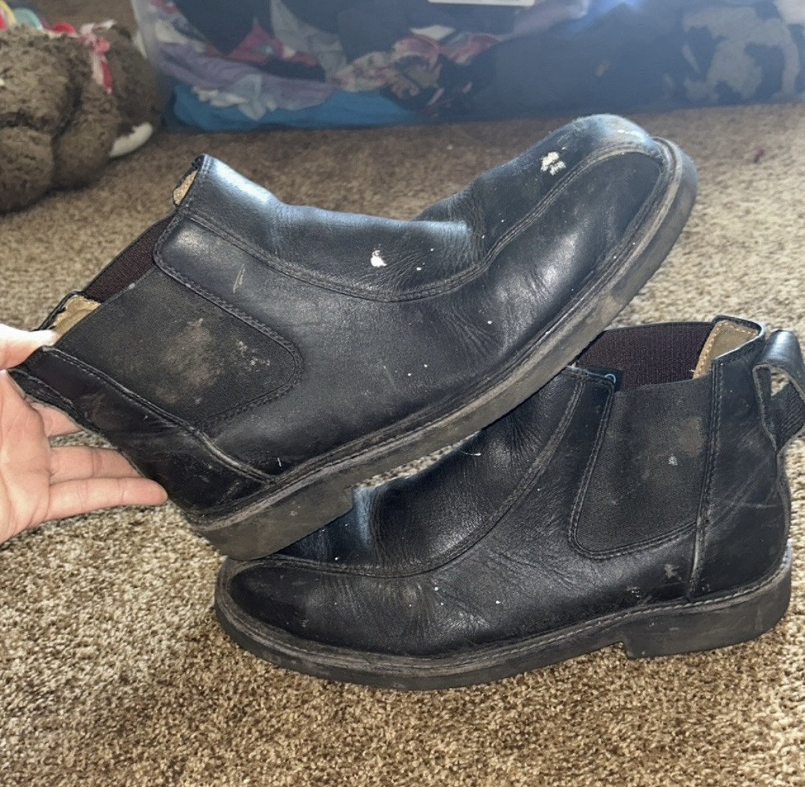 black work boots. i got these and only ended up needing them for a month. so they have been worked in, obviously got some paint on them, but they have SO MUCH LIFE left in them. i had just gotten them resoled with special non-slip right before, so even more life!