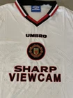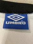 Show your support for Manchester United with this Umbro retro-style away jersey from the 96/97 season. Made for men, this jersey features the iconic white color and the team's emblem on the chest. The size is a comfortable L, which fits most fans comfortably. Perfect for soccer enthusiasts and Manchester United supporters, this jersey is a must-have for any collection. Wear it proudly to the next game or display it in your fan cave. LIKE NEW - LIKE NEVER WORN UNIQUE L somehwhat slim fit, Please keep in mind Soccer Jerseys tend to be delicate, hand washed and not strong chemicals in extremely recommended, and DO NOT dry on dryer. Air dry only. Returns for damage caused by costumer wont be accepted. If interested in measurements, do not hesitate to ask for them, that way you avoid returning the item.